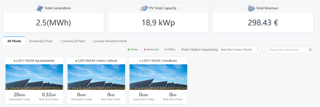 Para acceder a los datos de las plantas acceda a https://server.growatt.com/login utilizando usuario: L2017ADLM y contraseña: 123456